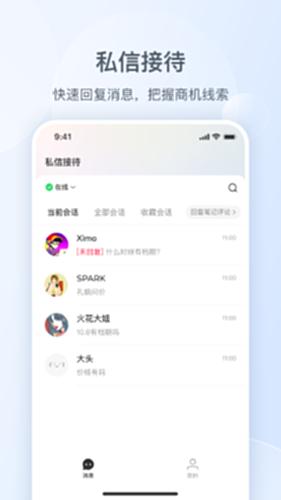 小红书私信通电脑版介绍:「小红书私信通电脑版」是一款专为小红书商业化客户设计的一站式线索经营平台。它集成了欢迎语、自动回复、留资组件、多客服分线、私信触达意向评论以及客资自动识别抓取等功能,旨在帮助企业降低人工成本,提升销售转化率,从而全面优化在小红书平台的线索营销和经营效率。