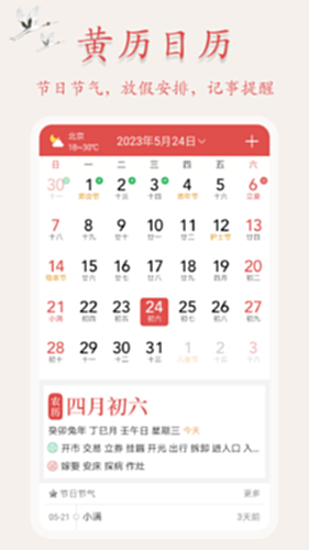 万年历、日历、农历、黄历、阴历、周公解梦、天气预报、记事、倒数日、记事提醒便捷查看,一目了然!