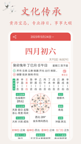 (2)黄历:拥有完整的老黄历信息,详细罗列出农历节气变化,每日宜忌,吉神凶神,天干五行,同时显示公历、农历等多套历法;