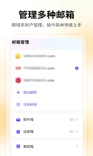 支持用户添加和管理多个邮箱账户,在一个界面上轻松管理多个邮箱。