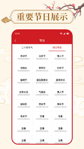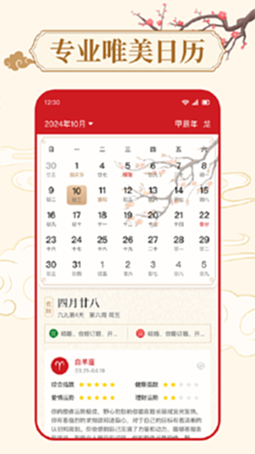 公历农历显示:清晰展示公历日期、星期,同时对应显示农历日期、干支纪年等,方便用户进行日期对照和传统日期查询;