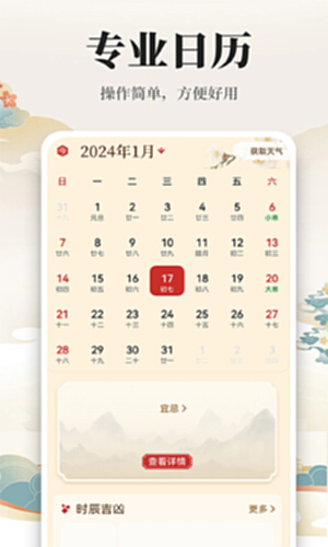 ②界面简洁,不冗余,凸显中国风,做优质准确的中国日历万年历!
