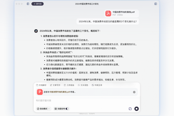 5、便捷的桌面助手:文心提供文档解析、一键导出等功能,作为桌面智能助手,让信息处理更高效便捷。