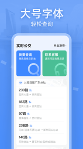 面设计,操作方便快捷。实时公交大字版致力于为用户提供便捷、高效的公交出行