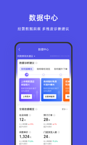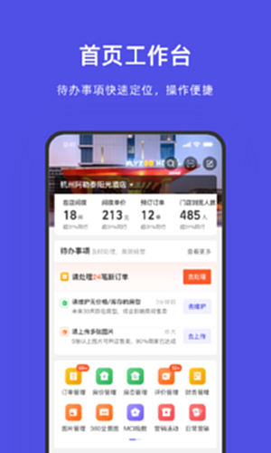 飞猪酒店商家是飞猪为商家推出的移动端应用管理工具,酒店可以时刻掌控客人预订,处理订单、管理价格、掌控房态、处理评论,美化图片样样精通,更简单,更便捷!
