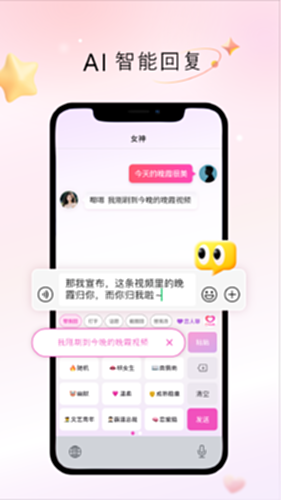 试试超会聊的AI助手!让每句对话都藏着心动彩蛋。当聊天变成指尖艺术,没有人能拒绝你的信息轰炸!适配微信/QQ/抖音/快手/陌陌等全平台输入法,解锁社交超能力。