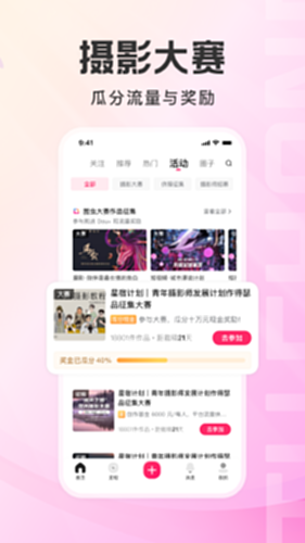 类型丰富的官方摄影大赛等你参加,更有千万流量与奖金奖品等你赢取,你的好照片值得被更多人看到。