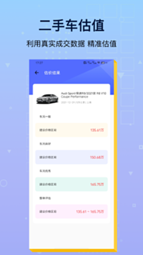 【二手车估值】利用真实成交数据训练算法,评估师修正模型,为车辆进行精准估值。