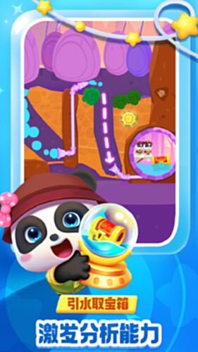 奇奇妙妙发现新的藏宝地——泡泡乐园。这里有透明泡泡,还有蓝水球、紫色酸水球,而宝箱在洞底,要如何获取?有了!宝宝试试戳破蓝水球,释放水流,并规划水流路线,运用水的浮力,让宝箱浮上来。要注意,紫色酸水具有腐蚀性,可别让它破坏了宝箱哦!