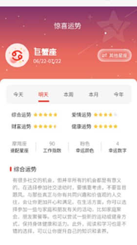步步行运是一款为你的健康护航的运动软件。它能让你轻松掌握自己的运动数据,内含代谢率计算器,更有贴心的祥瑞一言和星座运势,赶紧下载,踏上全新的健康生活之旅吧!