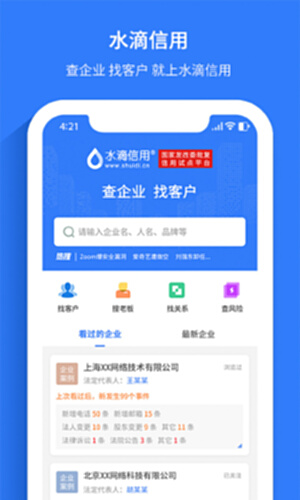 通过大数据优势,水滴信用可以提供全面的企业信息查询服务,拥有企业信息、工商数据、知识产权、司法诉讼、经营信息、股权关系等海量数据,帮助用户全面了解目标企业的基本情况。