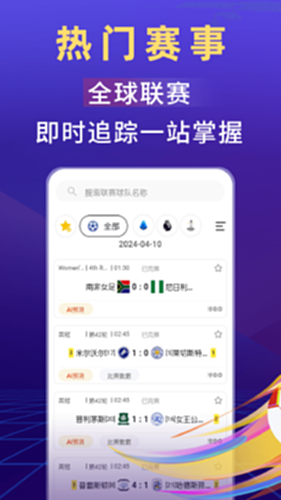 AI懂球覆盖全球热门足球比赛。为广大足球爱好者提供精准的赛事及时比分、赛事预测、赛事数据分析等服务。