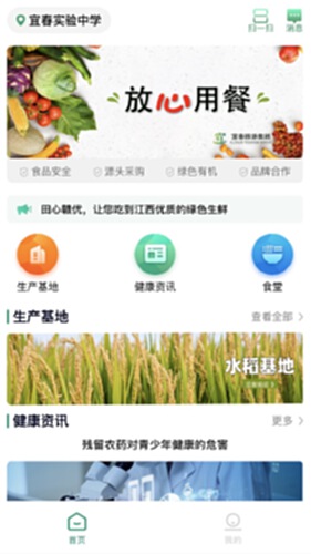 版本1.0.0以学生放心用餐为宗旨,打造从种子到餐桌,进行全产业链主动监管。可以查看学校后厨摄像头,菜单,营养膳食。生产基地、供应商介绍。