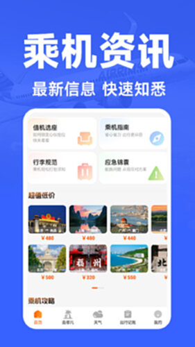 航班订票助手,提供全面、精准的全国航班查询,特价机票随时查询,是您从家门到机舱的全方位旅行助手。