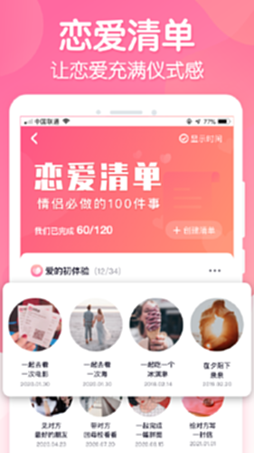 恋爱ing致力于为恋爱中的情侣们打造专属的私密互动空间,在这里你们可以记录每一天的恋爱时光,同时还可以使用纪念日、写情书、恋爱清单、经期助手的等专属服务。