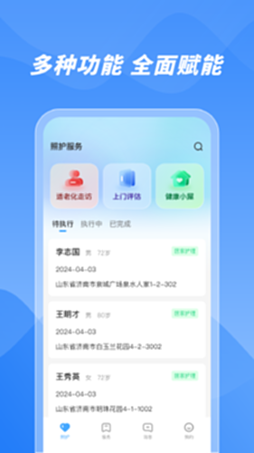 数智康养服务端电脑版介绍:数智康养服务APP是一个面向养老服务机构的综合性管理平台,旨在提升服务质量和运营效率。机构可通过平台管理服务项目、发布信息、实时查看订单、管理服务人员及统计数据,确保服务流程顺畅。用户可预约家政、餐饮配送、紧急救助等多种生活照料服务,享受便捷体验。应用内置评价反馈系统,用户可对服务评分留言,帮助机构及时优化服务内容。