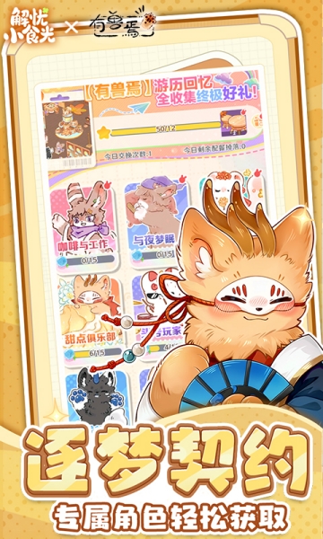 5、完善的任务奖励: 解忧小食光游戏内设有丰富的任务系统,完成不同难度的任务即可获得丰厚的金币与道具奖励。