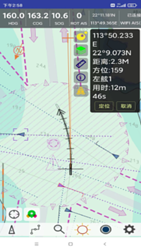 随着船舶大型化日益明显,船舶操纵风险越来越高;智能硬件比以往更便携、运行速度越来越强为船舶驾驶员、引航员提供了更多的助航解决方案;随身引航电子海图助航软件OurPilot 是由北京伴众行科技有限责任公司自主研发,运行于智能手机或平板电脑的电子海图助航软件,主要用于船舶进出港水域;其功能是船舶助航如:引航员、船长和海员等用户通过该软件可进行本船定位,航行监控,危险报警等功能;另外,随身引航通过网络能够获取更多的气象、水流或潮汐等助航数据,有效提高船舶航行安全。