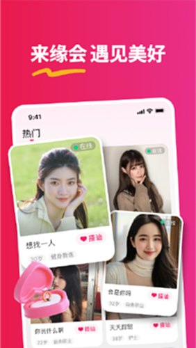 缘会电脑版介绍:缘会是一款兴趣交友APP,通过分析用户的交友兴趣,精准推荐志同道合的朋友,便于用户快速建立深度社交关系。其特色功能包括“遇见美好”帮助结识有趣的聊天伙伴、“真人认证”确保个人主页真实可靠以提升安全性,以及“精美礼物”用于向兴趣相投的对方表达心意,旨在为用户打造安全、贴心的社交体验。