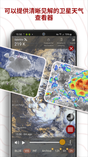 4、预测工具强大:Windy不仅提供预报,还具备分析天气前线、回顾历史模式等强大工具,帮助用户深度理解天气。