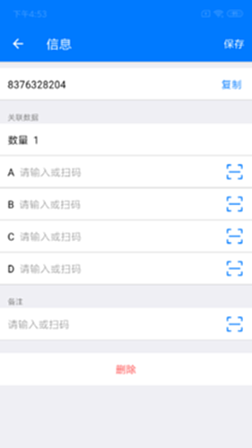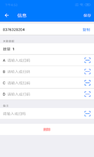 批量扫描与信息录入:可以让你为每一个条码添加备注,录入其他信息,如快递单号,客户名称,商品属性,装货清单,零件清单等。