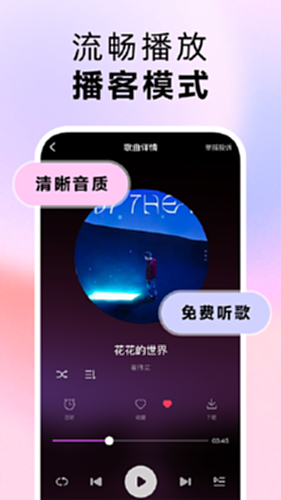 特别优化了播客播放模式,提供流畅的音频体验,让您在收听播客时不再卡顿,享受舒服的听觉体验。让您随时随地畅听高品质音乐和播客内容。