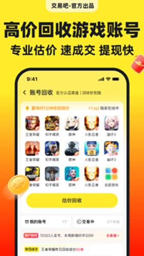 【交易吧】深耕游戏账号交易行业数十年,具备完善的官方包赔服务保障,用心做好每一笔交易。