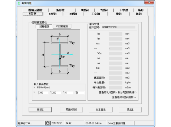 3、构件截面分析:软件支持H型钢、槽钢、矩形管等多种常用截面形式的特性计算,并支持自定义截面以满足特殊需求。