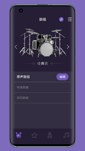 - 鼓组模块:按鼓组风格进行了分类,让您直观地按照风格选取所需要的鼓组。点击编辑后可为不同的鼓盘配置您想要的音色并进行参数调节,最后将自己满意的设置保存下来。