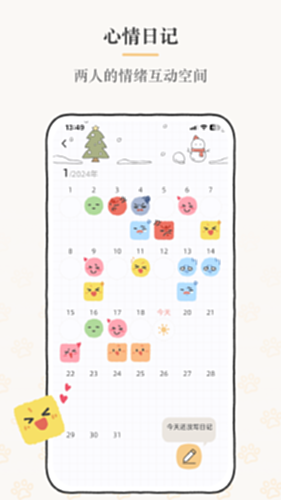 两人的专属心情日记,可实时同步对方,时刻关注对方的心情变化~