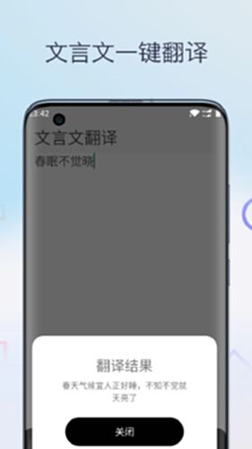 文言文翻译字典APP是一款功能强大的学习工具,专为对古汉语感兴趣的人士设计。APP集成了文言文一键翻译功能,只需简单点击,就能快速理解文言文的含义,将复杂的古文翻译成现代白话,帮助您更好地理解和欣赏文言文的魅力。 此外,文言文翻译字典APP也是一部全面的古汉语字典。这里收录了大量古汉语词汇,无论是常见的古词,还是稀有的古汉字,都能在此找到,让您对古汉语有更深入的理解。 更值得一提的是,APP中还有海量的经典古籍供您赏析。从《诗经》、《易经》到《红楼梦》、《西游记》,无论是诗词鉴赏还是文学研究,都能在这些古籍中得到启示和乐趣。 总的来说,文言文翻译字典APP是您学习和研究古汉语的理想选择,无论是翻译文言文,查询古汉语,还是赏析古籍,都能找到满意的解答。下载文言文翻译字典APP,让我们一起探索古代汉字的魅力吧!
