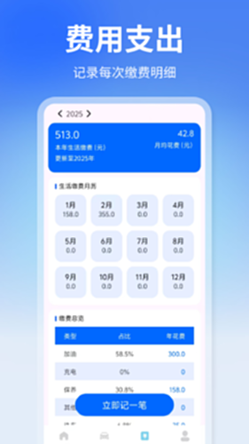 记录收支,一目了然。轻松记录每一次加油、保养、维修以及违章罚款等支出。您可以清晰地看到每个月的支出情况,帮助您更好地规划财务。