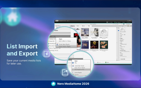 3、增强的媒体管理功能:Nero MediaHome 2026支持显示IPTC信息和列表导入导出,提升媒体库整理效率。
