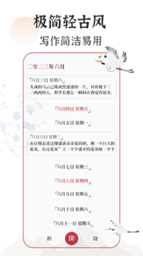 ⑤ 精美信纸 - 多种风格的信纸选择,让记录更具个性。