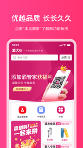 酒大G是一个数字酒行,是一个专业卖酒的平台。