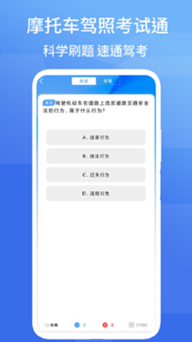 摩托车驾照考试通电脑版介绍:摩托车驾照考试通APP电脑版提供全面的驾考学习服务,涵盖科目一和科目四的最新题库,并对考点进行多维分类,每道题配有详细技巧讲解。它支持一站式学习,包括章节学习、专项测试和模拟考试等多种模式,深度解析考点与考试方法,帮助学员高效记忆考题、熟悉交通法规。通过大数据分析,APP为学员定制科学学习方案,强化理论知识,提升复习效率,助力快速通过考试并轻松取得驾照。