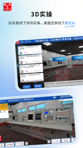 北京中教安达消防科技有限公司,根据国家初、中、高级消防设施操作仿真考试系统开发的学习和练习系统。可以全方面的仿真考试,和国家考试基本一致。是根据总队消防训练基地,鉴定站真实场景,开发的消防设施操作员三维VR实操软件,有初、中、高级实操,全景三维仿真、操作和现场操作一样。同时还拥有实操仿真和理论考试,可以大幅度提高通过率。 PC,Android,理论题库账号互通