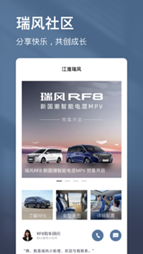 江淮瑞风App提供远程车控、一键维保、事故救援、一键家桩等便捷服务,让您智能用车;