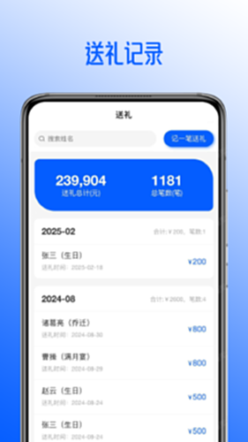√ 可视化关系图谱:独创「收支平衡」看板,实时展示与每位亲友的往来明细,通过动态图表直观呈现收礼 / 送礼比例,助您洞察社交往来的深层价值。