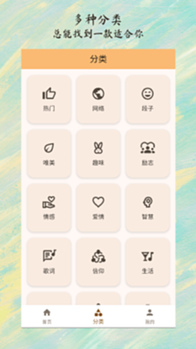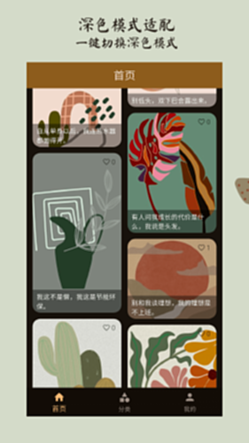 应用中提供了各种类型的名人名言和配图可供欣赏,也可以根据需要在编辑图文功能中自己编辑想要的内容。