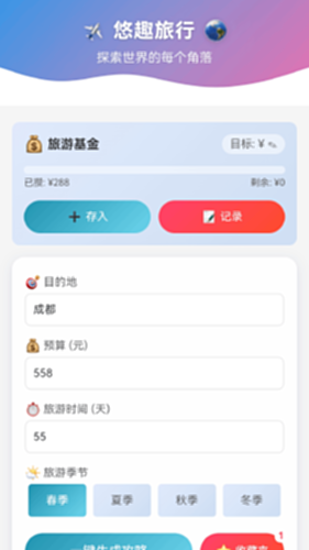 悠趣三连是一款集趣味与实用功能于一体的移动应用。它包含数字拼图、记忆配对和颜色记忆等,旨在锻炼用户的逻辑思维和记忆力。此外,应用还提供旅游基金管理功能,帮助用户规划和记录旅行预算,以及趣读笔记功能,培养阅读习惯并记录阅读进度和心得。用户界面简洁友好,适合各年龄段用户使用。