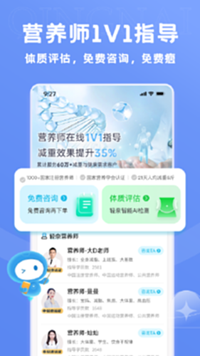 数十名专业的国家营养咨询师和健康管理师,一键预约在线答疑,不仅有名师公开课,更有专家一对一的体质评估,和免费咨询,只需完成三步测评,即可获得免费咨询机会,预约专家的定制美体方案。