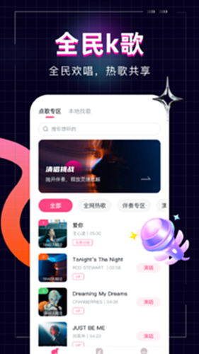 全民唱歌 KTV 是一款专为音乐爱好者打造的唱歌软件。在这里,你可以尽情展现自己的歌喉,享受音乐带来的快乐。