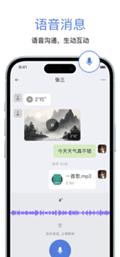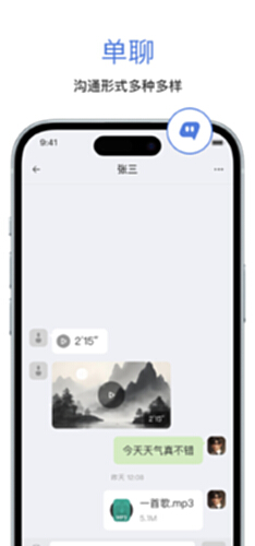 提供简洁易用的文字聊天界面,支持快速发送和接收消息。您可以随时与同事、合作伙伴进行文字沟通,分享想法、交流工作进展。