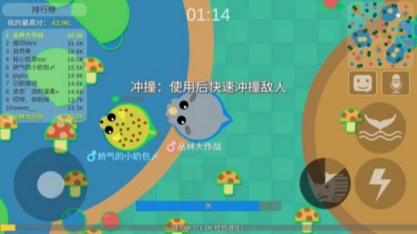 1、Q萌卡通画风:游戏采用Q萌可爱的卡通风格,玩家化身呆萌小动物,展开弱肉强食的生存挑战。