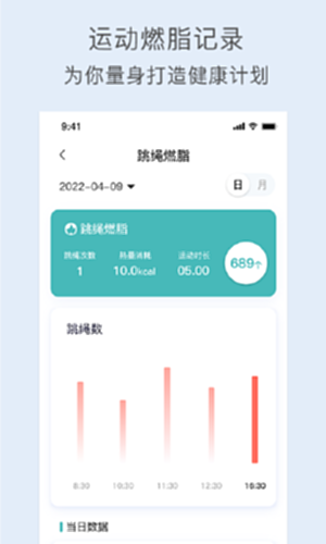 2、跳绳运动时长功能;精确记录每天的运动时长,