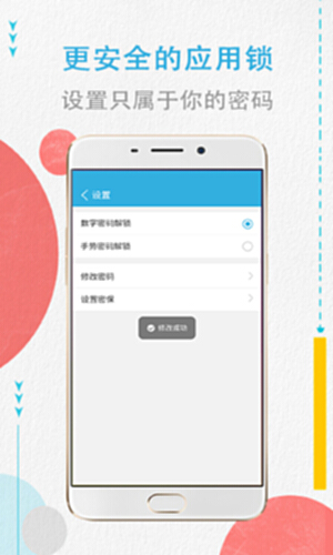 除了基础的安全功能外,这款APP还注重用户体验。它拥有简洁的界面和流畅的操作流程,让您在使用过程中倍感舒适。此外,该APP还提供了丰富的个性化设置选项,以满足不同用户的需求。您可以根据自己的喜好调整锁屏样式、密码提示等,让您的手机更加个性化。