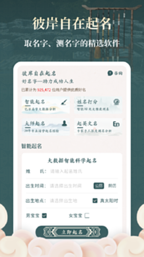 直接输入姓氏等简单的信息就能获得免费的90分以上的好名字任你选,根据真太阳时,依照出生时间、名字笔画、说文解字,大数据科学分析,快速为宝宝起名字,全方位解读名字寓意,免费起名打造专属好名,富贵吉名常伴一生。