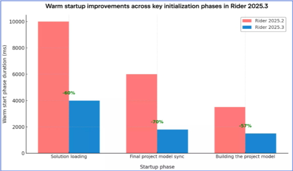 3、优化启动与加载:JetBrains Rider2025通过内部初始化优化,缩短了解决方案加载时间,编辑器启动更加流畅无闪烁。