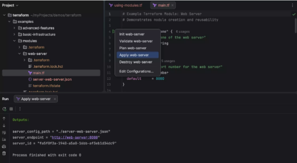 3、开箱即用的 Terraform 支持:软件默认内置并启用 Terraform 插件,提供语法高亮、代码补全及格式化功能。
